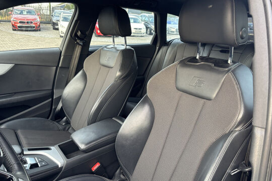 De S-Line uitvoering geeft deze A4 een extra dynamisch karakter. Denk aan een sportieve uitstraling, sportstoelen met uitstekende zijdelingse steun, een zwart afgewerkte hemelbekleding, een sportstuur met schakelflippers en fraaie 19 inch lichtmetalen velgen in zwart. Alles ademt sportiviteit, zonder in te leveren op comfort.