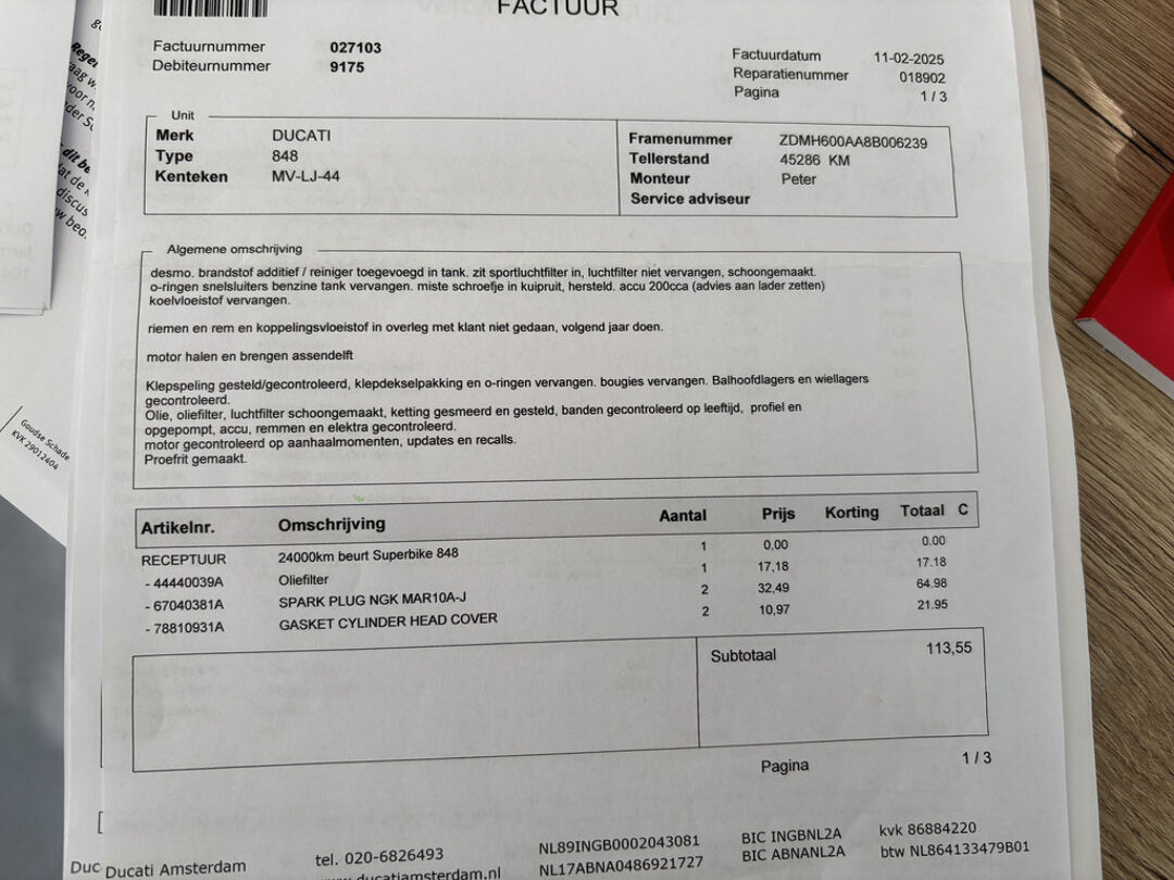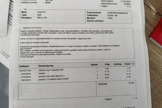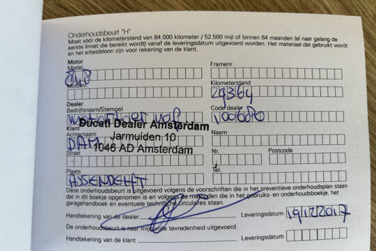 -Onderhoudshistorie is volledig inzichtelijk (een geruststellende gedachte bij een Ducati)