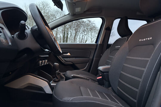 Deze Duster valt direct op door zijn hoge instap en hoge zitpositie, wat zorgt voor een comfortabele en veilige zit met uitstekend overzicht op de weg. De goede zitplaatsen bieden veel steun, ook tijdens langere ritten, en samen met de ruime kofferbak is deze Duster ideaal voor dagelijks gebruik, weekenduitjes of langere vakanties.